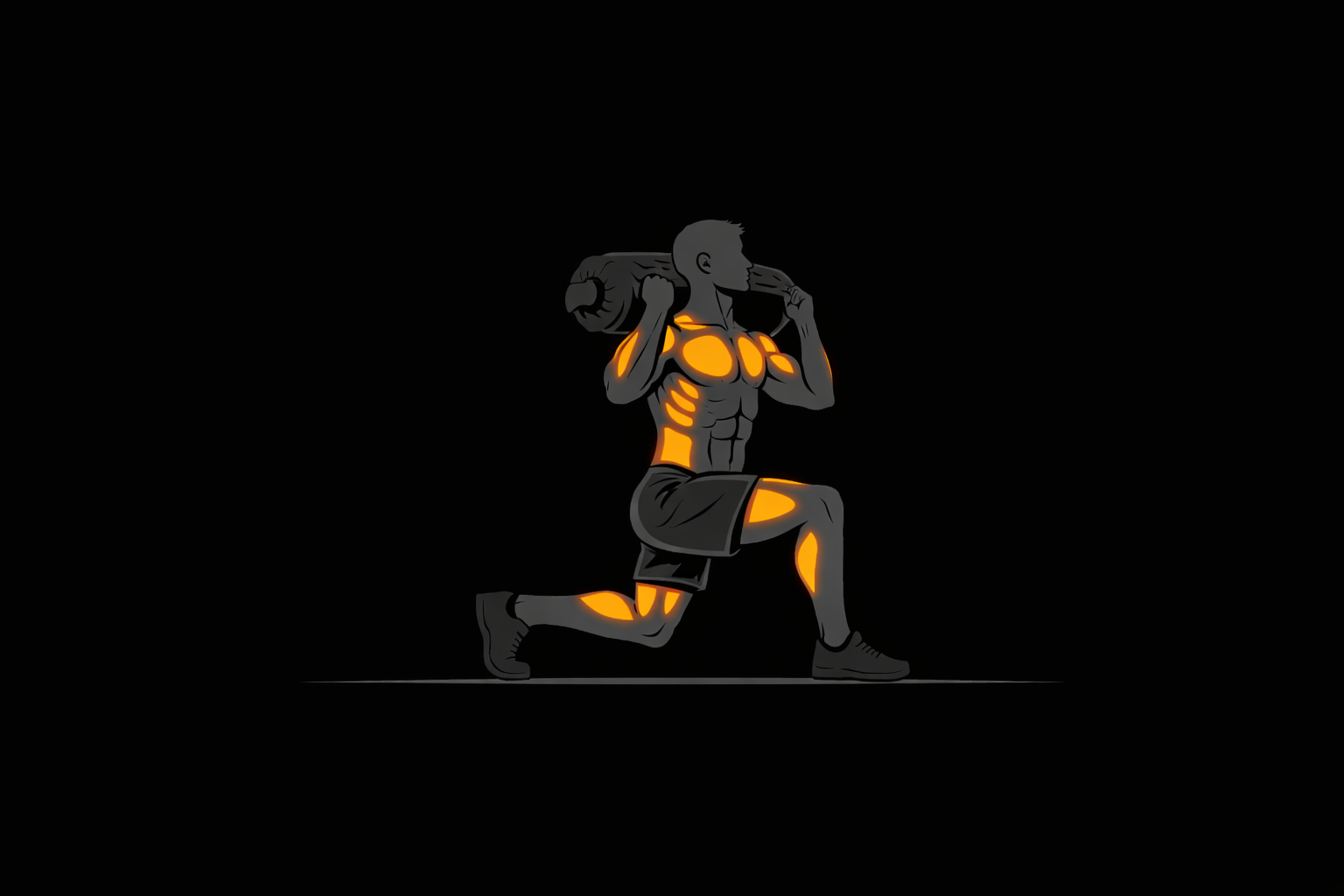 Lunges met een zandzak op je schouder. Het laatste station voor de finish bij Hyrox.