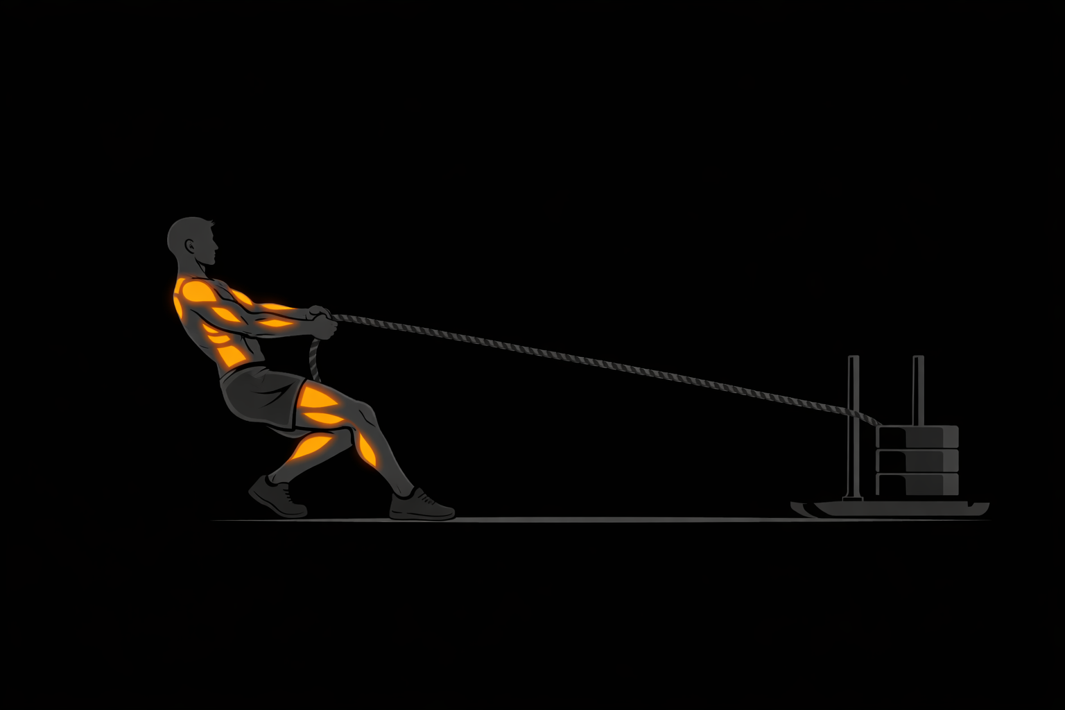 Trek een gewichtsslee naar je toe met een touw. Een van de zwaarste stations bij Hyrox.