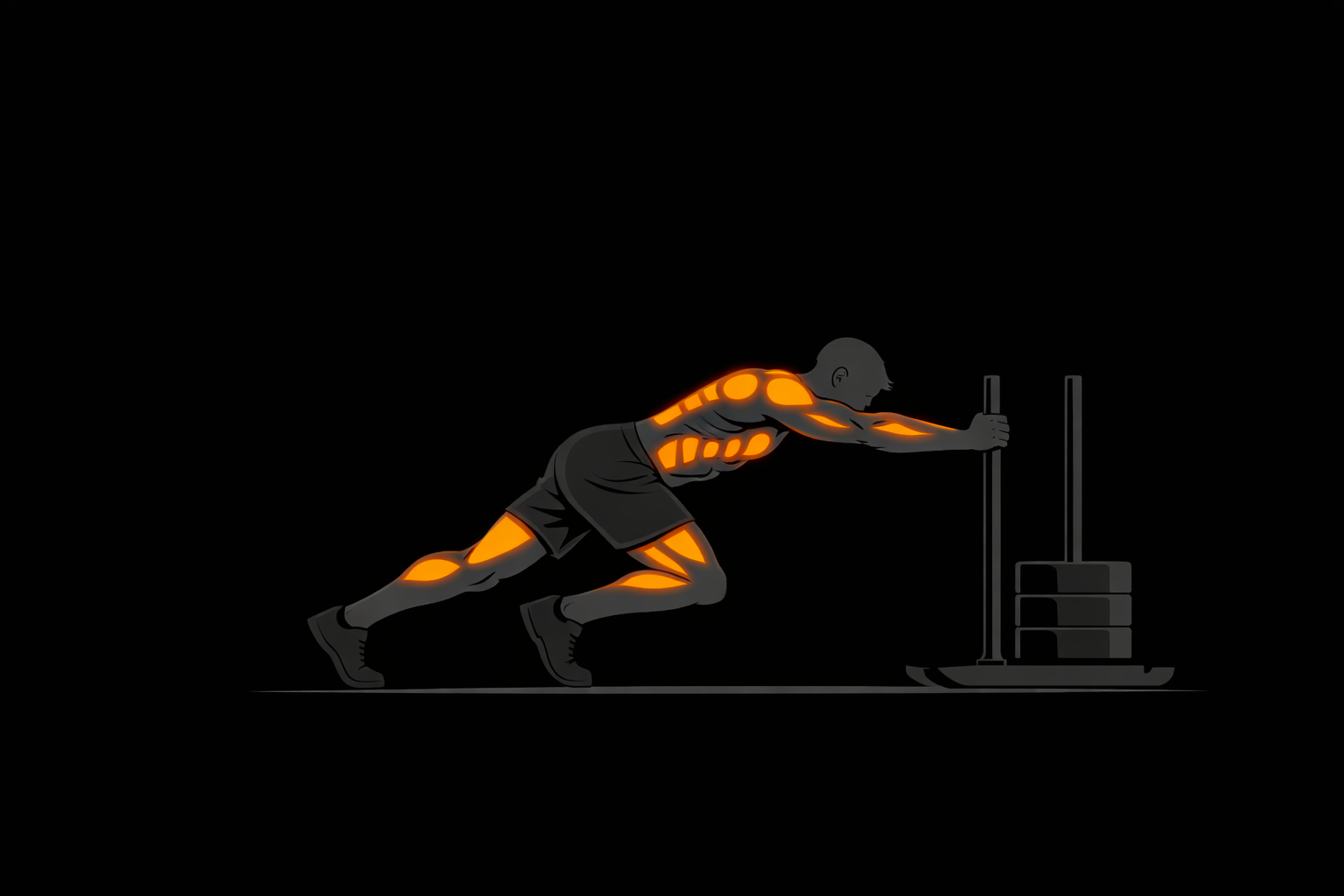 Duw een gewichtsslee over een afstand. Essentieel onderdeel van elke Hyrox race.